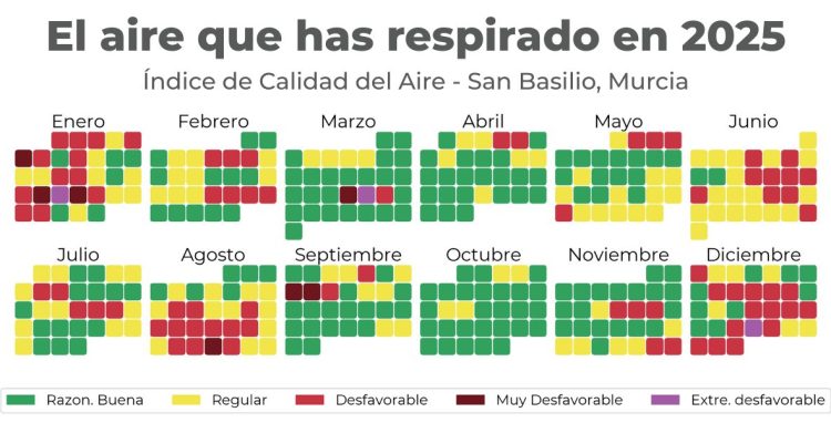 Qué dicen los datos oficiales y qué no se está haciendo para proteger la salud Durante 2025, la calidad del aire en Murcia estuvo lejos de ser un problema puntual…